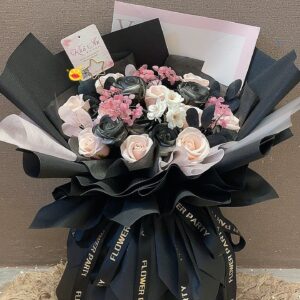 Đây là một mẫu mới của Khả an flower, bó hoa được mic bởi tông đen và hồng rất cute. Bó hoa cao tầm 70 cm rộng tầm 40 đến 50 cm, bó hoa này rất thích hợp để tặng vào dịp sinh nhật, chụp ảnh kỷ yếu, tặng vào dịp lễ tốt nghiệp, tặng người yêu, tặng bạn bè … Shop cả An flower đóng hàng rất cẩn thận vào các thùng các tông khi ship đi tỉnh nên các bạn hãy yên tâm đặt hàng nhé, nếu bạn ở Hà Nội hoặc có nhu cầu tặng bạn bè người thân ở Hà Nội thì hãy gọi ngay cho Khả An flower để đặt hàng, chúng tôi sẽ lên đơn và gửi theo yêu cầu của quý khách đến tận tay người nhận Hãy gọi theo hotline của Khả An Flowers 096 666 89884 để đặt hàng