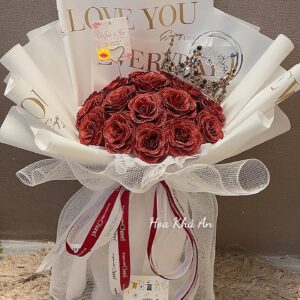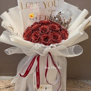 Bó hoa nhũ đỏ 20 bông tặng kèm vương miện