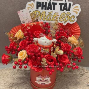 0651 Lẵng Mèo thần tài may mắn, xung túc quanh năm. Khai trương, Tết, Tân gia.