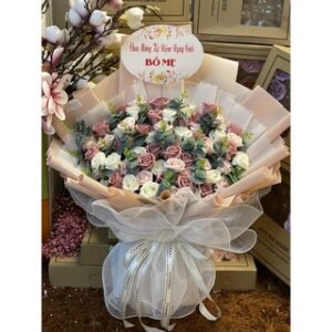 Bó hoa sáp 60b cao cấp mix lá táo mốc