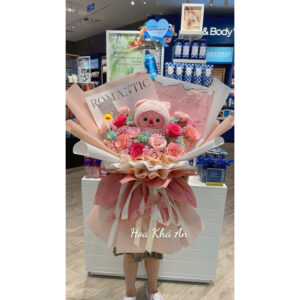 - Gấu Loopy Siêu Dễ Thương: Gấu Loopy xinh xắn tạo nên điểm nhấn đặc biệt, làm cho bó hoa thêm phần đáng yêu.