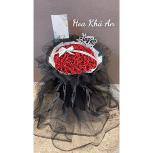 Bó hoa sáp đỏ 50bông 4 lớp cao cấp mix ren lưới tutu mềm