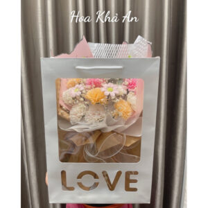 Bó hoa sáp 16 bông cẩm chướng mix thật sự là một lựa chọn xinh đẹp và tinh tế! Với thiết kế nhỏ gọn và vẻ đẹp tự nhiên giống hoa thật, bó hoa này mang lại sự duyên dáng và quý phái.
