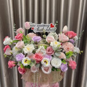 Lẵng hoa sinh nhật được mix với nhiều hoa cao cấp, nhiều màu sắc với tone màu hài hòa và quý phái